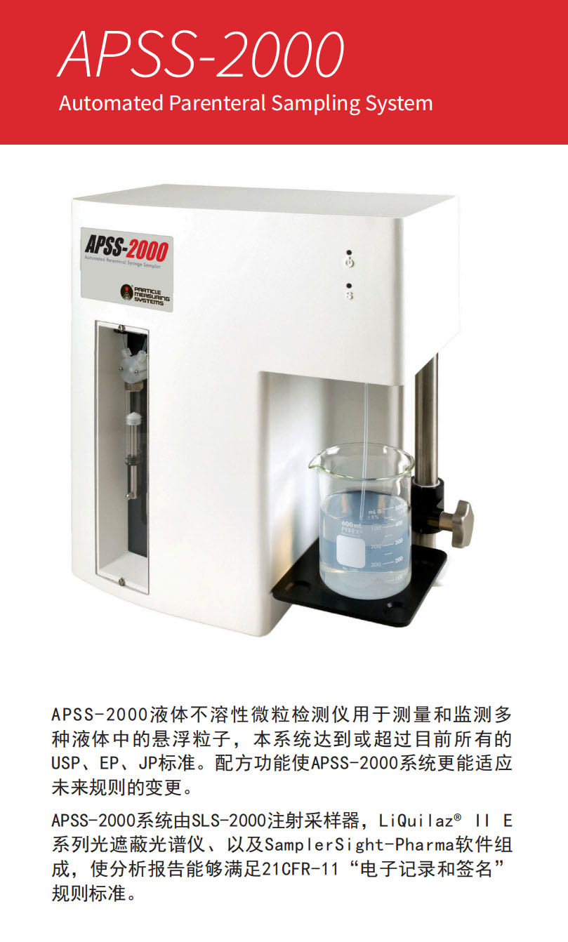 提及液體藥物生產(chǎn)的質(zhì)量控制,在最小化浪費(fèi)的同時(shí)符合規(guī)定是很重要的。APSS-2000注射用藥物顆粒計(jì)數(shù)器計(jì)數(shù)多種液體中的懸浮顆粒物,包括注射用藥物,以滿足所有目前的美國,歐盟和JP藥典標(biāo)準(zhǔn)。與用于注射/腸外的USP 788一樣,APSS-2000制藥系統(tǒng)具有配方功能,使其能夠適應(yīng)未來的監(jiān)管變化,較小的樣本量可以減少浪費(fèi)昂貴產(chǎn)品。