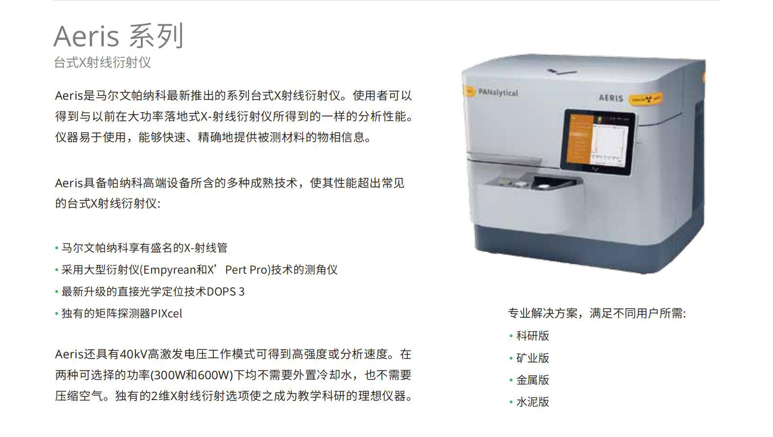 Aeris是馬爾文帕納科最新推出的系列臺(tái)式X射線衍射儀。使用者可以得到與以前在大功率落地式X-射線衍射儀所得到的一樣的分析性能。