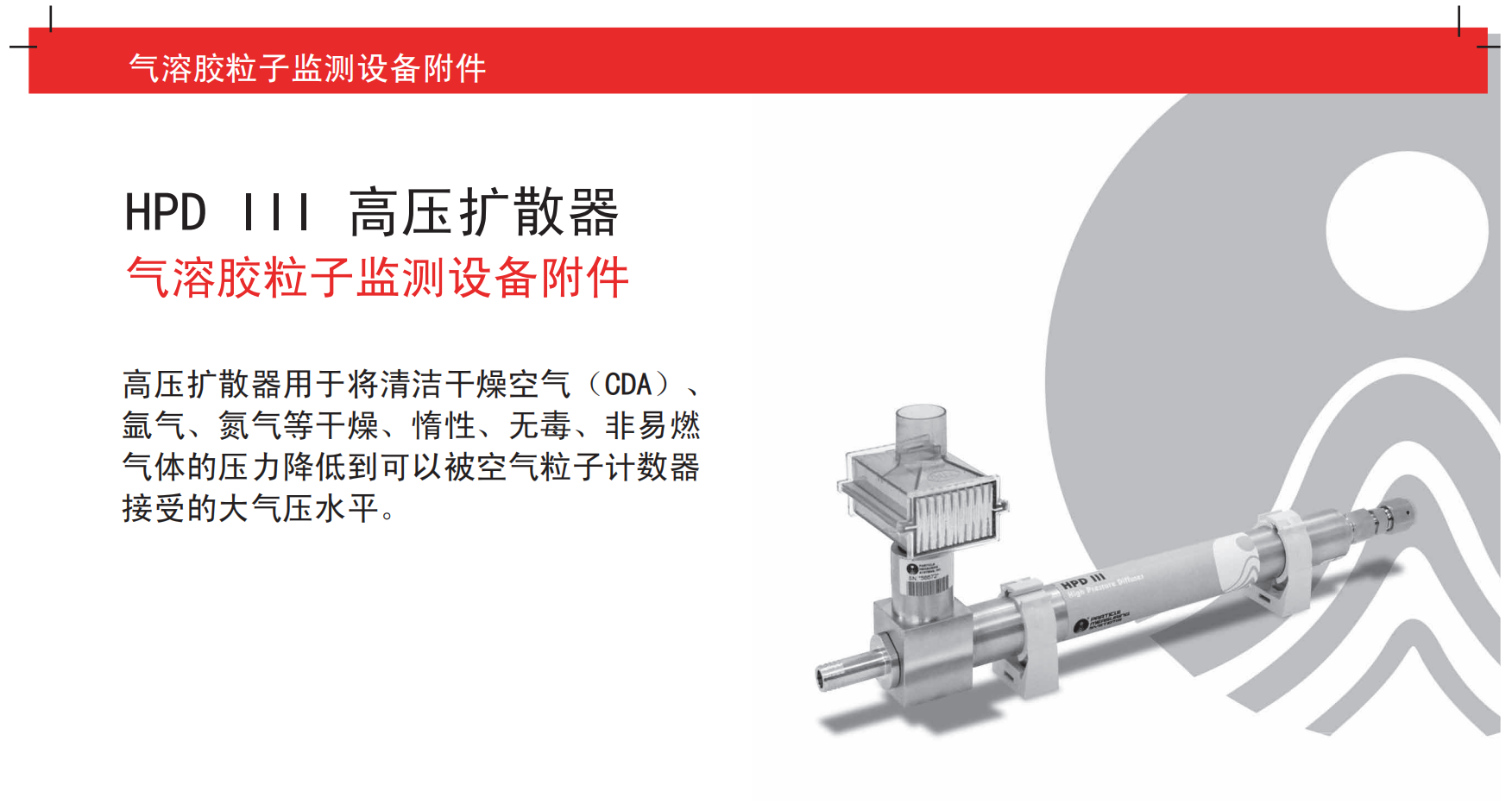 高壓擴(kuò)散器用于將清潔干燥空氣(CDA)、氬氣、氮?dú)獾雀稍?、惰性、無毒、非易燃?xì)怏w的壓力降低到可以被空氣粒子計(jì)數(shù)器接受的大氣壓水平。